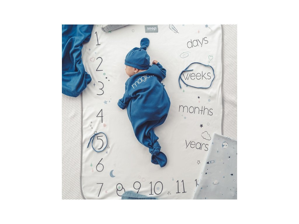 The reversible milestone photo blanket Snap the Moment – Powder Blue grows together with your baby. It’s perfect for documenting your child’s age – simply use the cotton strings to mark the day, month or year, place your baby on the blanket and capture a magical moment.